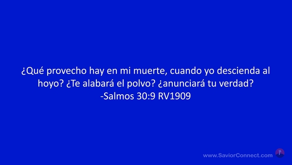 ¿Qué provecho hay en mi muerte, cuando yo descienda al hoyo? ¿Te alabará el polvo? ¿anunciará tu verdad? -Salmos 30:9 RV1909