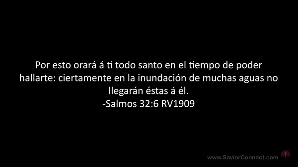 Por esto orará á ti todo santo en el tiempo de poder hallarte: ciertamente en la inundación de muchas aguas no llegarán éstas á él. -Salmos 32:6 RV1909