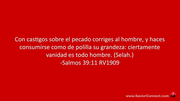 Con castigos sobre el pecado corriges al hombre, y haces consumirse como de polilla su grandeza: ciertamente vanidad es todo hombre. (Selah.) -Salmos 39:11 RV1909