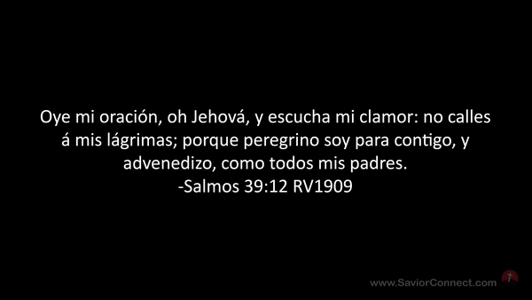 Oye mi oración, oh Jehová, y escucha mi clamor: no calles á mis lágrimas; porque peregrino soy para contigo, y advenedizo, como todos mis padres. -Salmos 39:12 RV1909