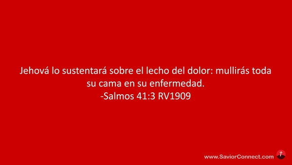 Jehová lo sustentará sobre el lecho del dolor: mullirás toda su cama en su enfermedad. -Salmos 41:3 RV1909