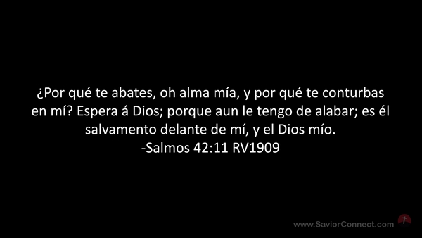 ¿Por qué te abates, oh alma mía, y por qué te conturbas en mí? Espera á Dios; porque aun le tengo de alabar; es él salvamento delante de mí, y el Dios mío. -Salmos 42:11 RV1909