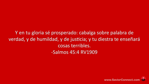 Y en tu gloria sé prosperado: cabalga sobre palabra de verdad, y de humildad, y de justicia; y tu diestra te enseñará cosas terribles. -Salmos 45:4 RV1909