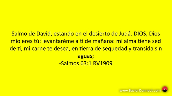 Salmo de David, estando en el desierto de Judá. DIOS, Dios mío eres tú: levantaréme á ti de mañana: mi alma tiene sed de ti, mi carne te desea, en tierra de sequedad y transida sin aguas; -Salmos 63:1 RV1909