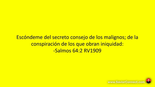 Escóndeme del secreto consejo de los malignos; de la conspiración de los que obran iniquidad: -Salmos 64:2 RV1909