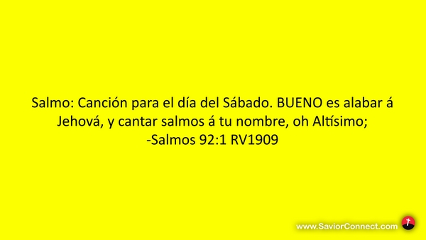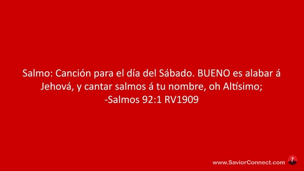 Salmo: Canción para el día del Sábado. BUENO es alabar á Jehová, y cantar salmos á tu nombre, oh Altísimo; -Salmos 92:1 RV1909