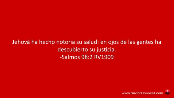 Jehová ha hecho notoria su salud: en ojos de las gentes ha descubierto su justicia. -Salmos 98:2 RV1909