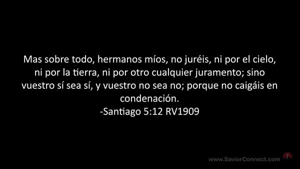 Mas sobre todo, hermanos míos, no juréis, ni por el cielo, ni por la tierra, ni por otro cualquier juramento; sino vuestro sí sea sí, y vuestro no sea no; porque no caigáis en condenación. -Santiago 5:12 RV1909
