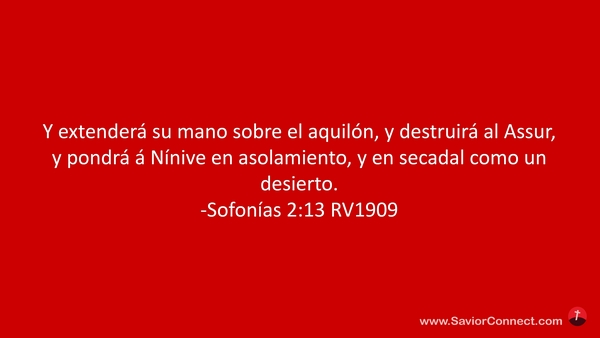 Y extenderá su mano sobre el aquilón, y destruirá al Assur, y pondrá á Nínive en asolamiento, y en secadal como un desierto. -Sofonías 2:13 RV1909
