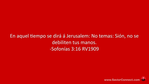 En aquel tiempo se dirá á Jerusalem: No temas: Sión, no se debiliten tus manos. -Sofonías 3:16 RV1909