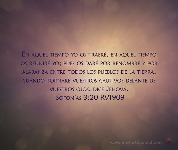 En aquel tiempo yo os traeré, en aquel tiempo os reuniré yo; pues os daré por renombre y por alabanza entre todos los pueblos de la tierra, cuando tornaré vuestros cautivos delante de vuestros ojos, dice Jehová. -Sofonías 3:20 RV1909
