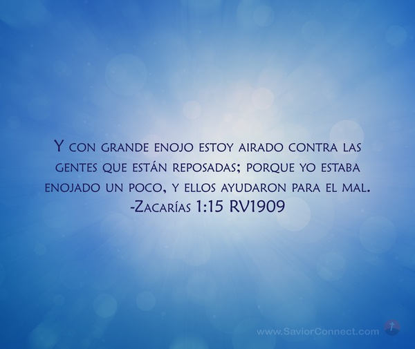 Y con grande enojo estoy airado contra las gentes que están reposadas; porque yo estaba enojado un poco, y ellos ayudaron para el mal. -Zacarías 1:15 RV1909