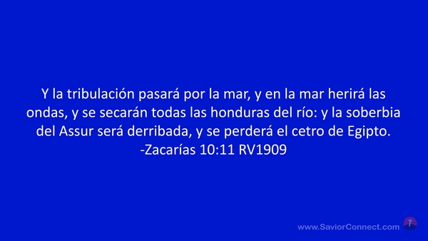 Y la tribulación pasará por la mar, y en la mar herirá las ondas, y se secarán todas las honduras del río: y la soberbia del Assur será derribada, y se perderá el cetro de Egipto. -Zacarías 10:11 RV1909