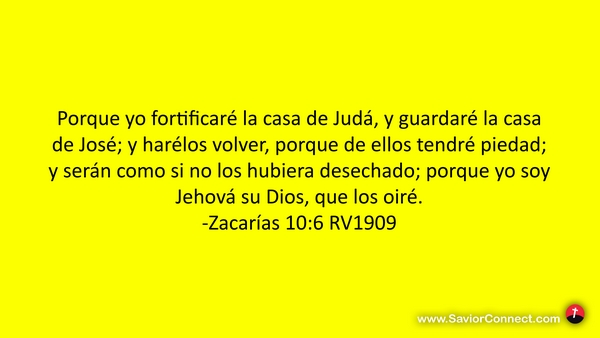Porque yo fortificaré la casa de Judá, y guardaré la casa de José; y harélos volver, porque de ellos tendré piedad; y serán como si no los hubiera desechado; porque yo soy Jehová su Dios, que los oiré. -Zacarías 10:6 RV1909