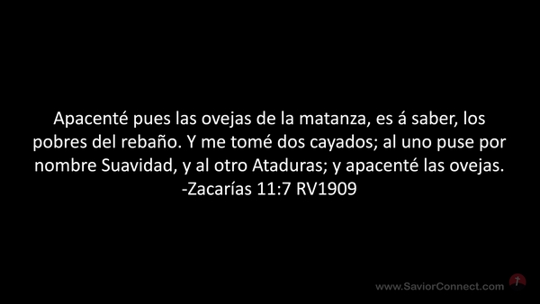 Apacenté pues las ovejas de la matanza, es á saber, los pobres del rebaño. Y me tomé dos cayados; al uno puse por nombre Suavidad, y al otro Ataduras; y apacenté las ovejas. -Zacarías 11:7 RV1909