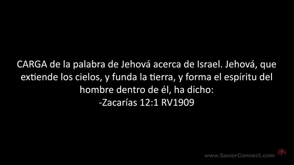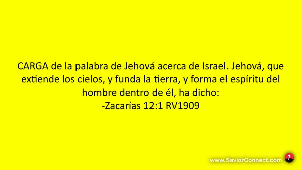 CARGA de la palabra de Jehová acerca de Israel. Jehová, que extiende los cielos, y funda la tierra, y forma el espíritu del hombre dentro de él, ha dicho: -Zacarías 12:1 RV1909