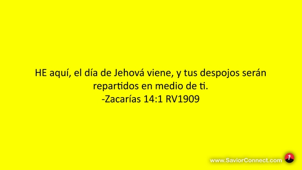 HE aquí, el día de Jehová viene, y tus despojos serán repartidos en medio de ti. -Zacarías 14:1 RV1909