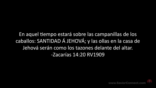 En aquel tiempo estará sobre las campanillas de los caballos: SANTIDAD Á JEHOVÁ; y las ollas en la casa de Jehová serán como los tazones delante del altar. -Zacarías 14:20 RV1909