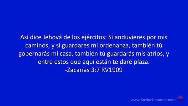 Así dice Jehová de los ejércitos: Si anduvieres por mis caminos, y si guardares mi ordenanza, también tú gobernarás mi casa, también tú guardarás mis atrios, y entre estos que aquí están te daré plaza. -Zacarías 3:7 RV1909