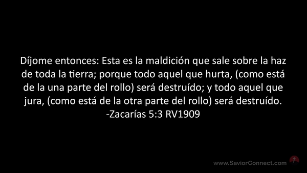 Díjome entonces: Esta es la maldición que sale sobre la haz de toda la tierra; porque todo aquel que hurta, (como está de la una parte del rollo) será destruído; y todo aquel que jura, (como está de la otra parte del rollo) será destruído. -Zacarías 5:3 RV1909