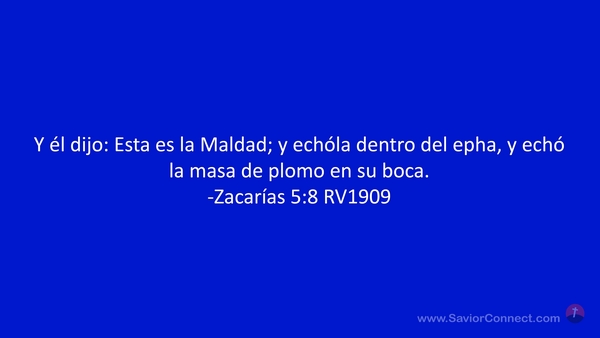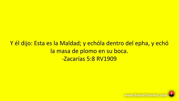 Y él dijo: Esta es la Maldad; y echóla dentro del epha, y echó la masa de plomo en su boca. -Zacarías 5:8 RV1909