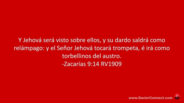 Y Jehová será visto sobre ellos, y su dardo saldrá como relámpago: y el Señor Jehová tocará trompeta, é irá como torbellinos del austro. -Zacarías 9:14 RV1909