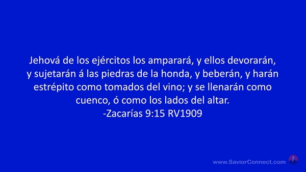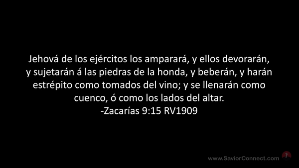 Jehová de los ejércitos los amparará, y ellos devorarán, y sujetarán á las piedras de la honda, y beberán, y harán estrépito como tomados del vino; y se llenarán como cuenco, ó como los lados del altar. -Zacarías 9:15 RV1909