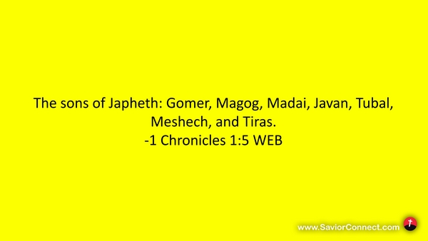 The sons of Japheth: Gomer, Magog, Madai, Javan, Tubal, Meshech, and Tiras. -1 Chronicles 1:5 WEB