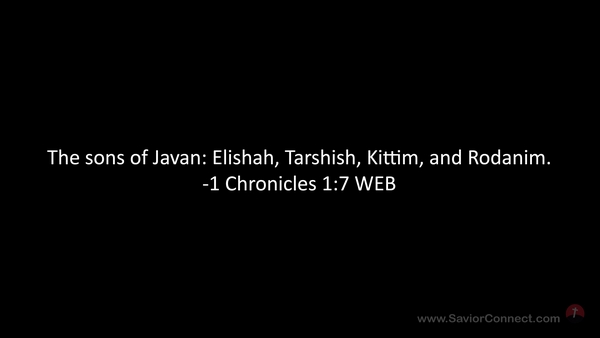 The sons of Javan: Elishah, Tarshish, Kittim, and Rodanim. -1 Chronicles 1:7 WEB