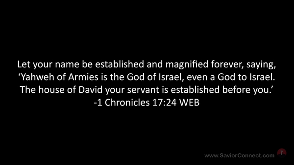 Let your name be established and magnified forever, saying, 'Yahweh of Armies is the God of Israel, even a God to Israel. The house of David your servant is established before you.’ -1 Chronicles 17:24 WEB
