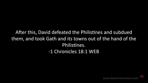 After this, David defeated the Philistines and subdued them, and took Gath and its towns out of the hand of the Philistines. -1 Chronicles 18:1 WEB
