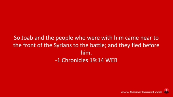 So Joab and the people who were with him came near to the front of the Syrians to the battle; and they fled before him. -1 Chronicles 19:14 WEB