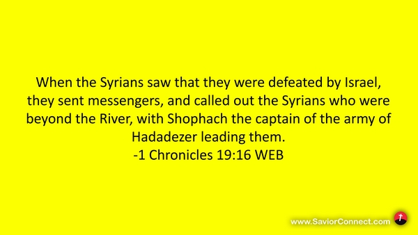 When the Syrians saw that they were defeated by Israel, they sent messengers, and called out the Syrians who were beyond the River, with Shophach the captain of the army of Hadadezer leading them. -1 Chronicles 19:16 WEB