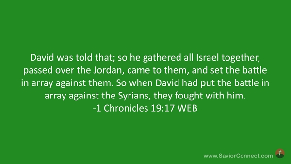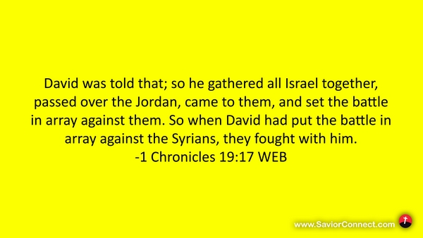 David was told that; so he gathered all Israel together, passed over the Jordan, came to them, and set the battle in array against them. So when David had put the battle in array against the Syrians, they fought with him. -1 Chronicles 19:17 WEB
