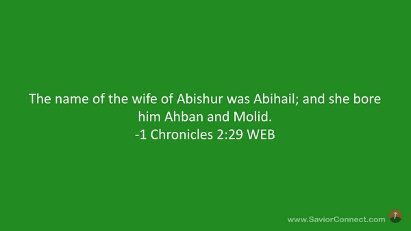 The name of the wife of Abishur was Abihail; and she bore him Ahban and Molid. -1 Chronicles 2:29 WEB