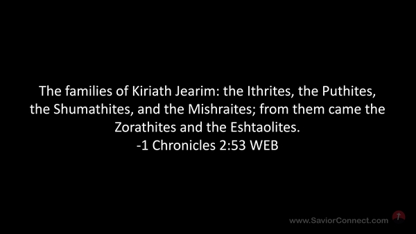 The families of Kiriath Jearim: the Ithrites, the Puthites, the Shumathites, and the Mishraites; from them came the Zorathites and the Eshtaolites. -1 Chronicles 2:53 WEB
