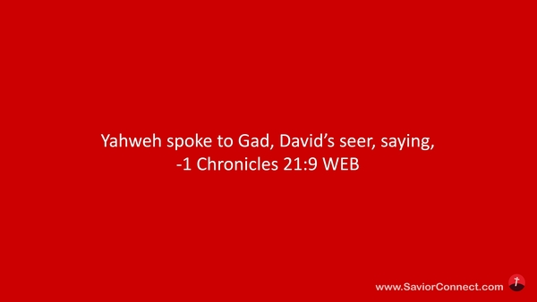 Yahweh spoke to Gad, David’s seer, saying, -1 Chronicles 21:9 WEB