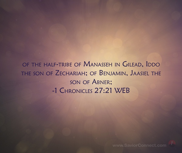 of the half-tribe of Manasseh in Gilead, Iddo the son of Zechariah; of Benjamin, Jaasiel the son of Abner; -1 Chronicles 27:21 WEB