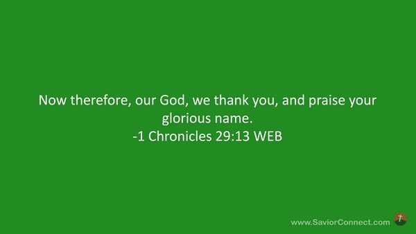 Now therefore, our God, we thank you, and praise your glorious name. -1 Chronicles 29:13 WEB