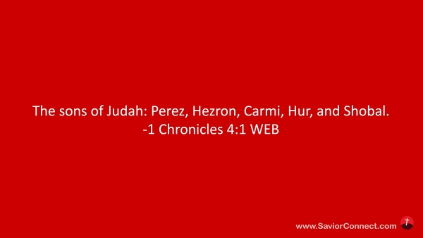 The sons of Judah: Perez, Hezron, Carmi, Hur, and Shobal. -1 Chronicles 4:1 WEB