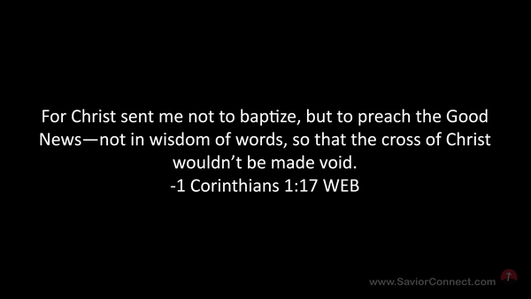 For Christ sent me not to baptize, but to preach the Good News—not in wisdom of words, so that the cross of Christ wouldn’t be made void. -1 Corinthians 1:17 WEB