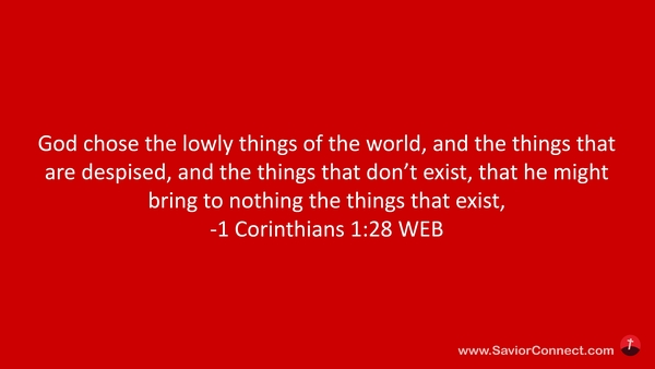 God chose the lowly things of the world, and the things that are despised, and the things that don’t exist, that he might bring to nothing the things that exist, -1 Corinthians 1:28 WEB