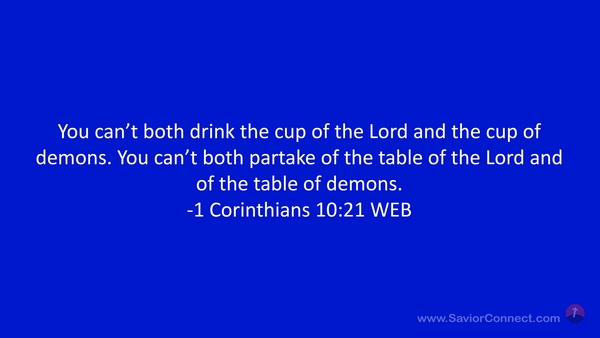 You can’t both drink the cup of the Lord and the cup of demons. You can’t both partake of the table of the Lord and of the table of demons. -1 Corinthians 10:21 WEB