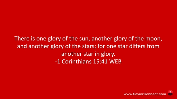 There is one glory of the sun, another glory of the moon, and another glory of the stars; for one star differs from another star in glory. -1 Corinthians 15:41 WEB