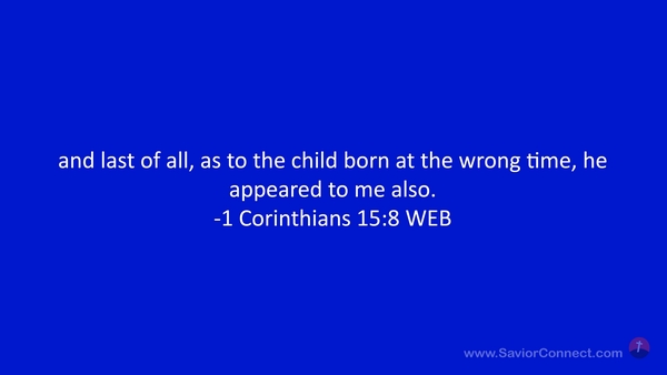 and last of all, as to the child born at the wrong time, he appeared to me also. -1 Corinthians 15:8 WEB