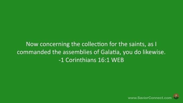 Now concerning the collection for the saints, as I commanded the assemblies of Galatia, you do likewise. -1 Corinthians 16:1 WEB