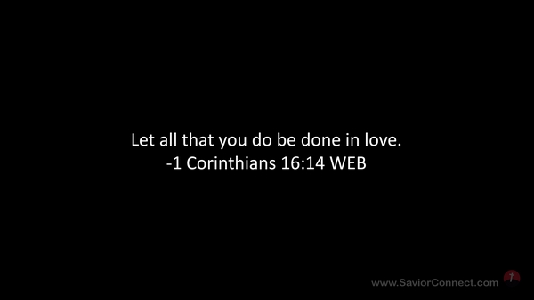 Let all that you do be done in love. -1 Corinthians 16:14 WEB