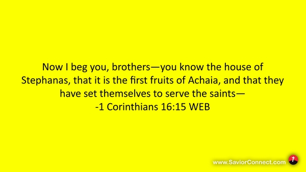 Now I beg you, brothers—you know the house of Stephanas, that it is the first fruits of Achaia, and that they have set themselves to serve the saints— -1 Corinthians 16:15 WEB