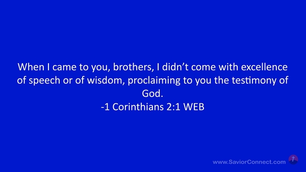 When I came to you, brothers, I didn’t come with excellence of speech or of wisdom, proclaiming to you the testimony of God. -1 Corinthians 2:1 WEB