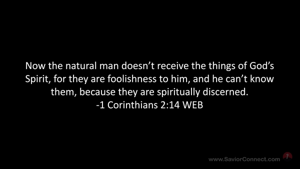 Now the natural man doesn’t receive the things of God’s Spirit, for they are foolishness to him, and he can’t know them, because they are spiritually discerned. -1 Corinthians 2:14 WEB